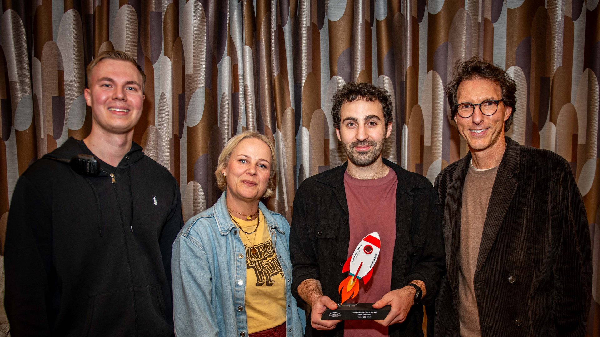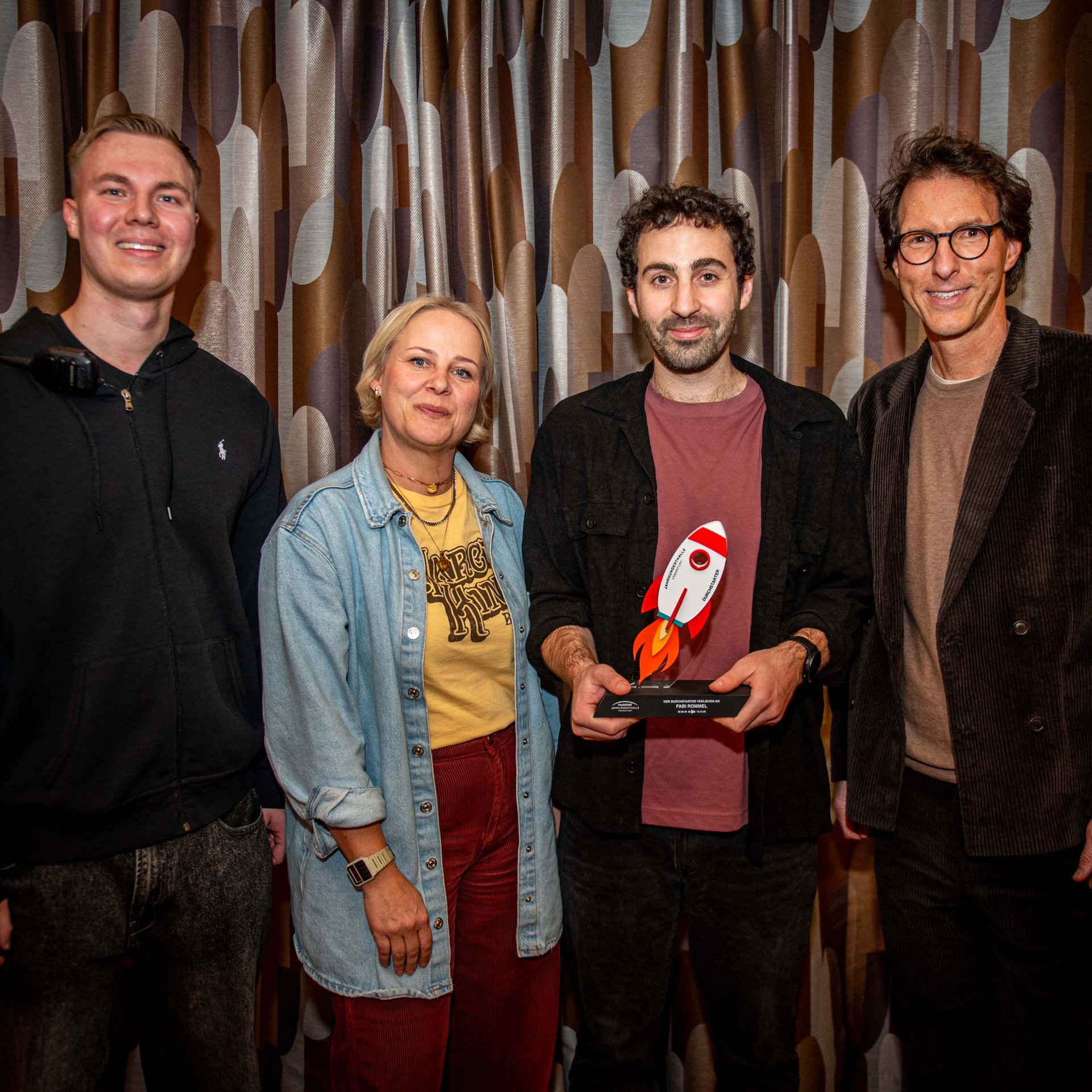 Niklas Davidsen (S-Promotion Gmbh), Ellen Giersberg (Leiterin der Kommunikation, myticket Jahrhunderthalle), Fabi Rommel, Moritz Jaeschke (Geschäftsfüher, myticket Jahrhunderthalle)