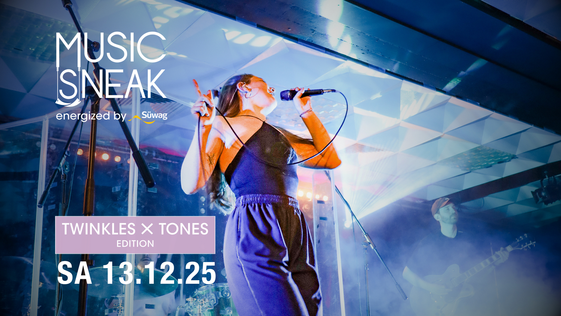 Wenn es draußen dunkler wird, darf es drinnen leuchten: Diese Ausgabe der Music Sneak energized by Süwag sorgt am 13. Dezember 2025 zum Jahresausklang für Glanz im Club der myticket Jahrhunderthalle.