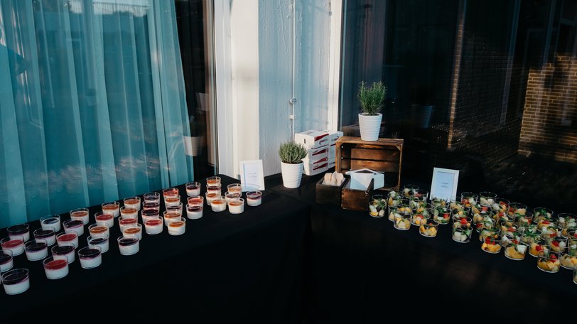 - Buffet mit weißen Tischdecken und Skirtings