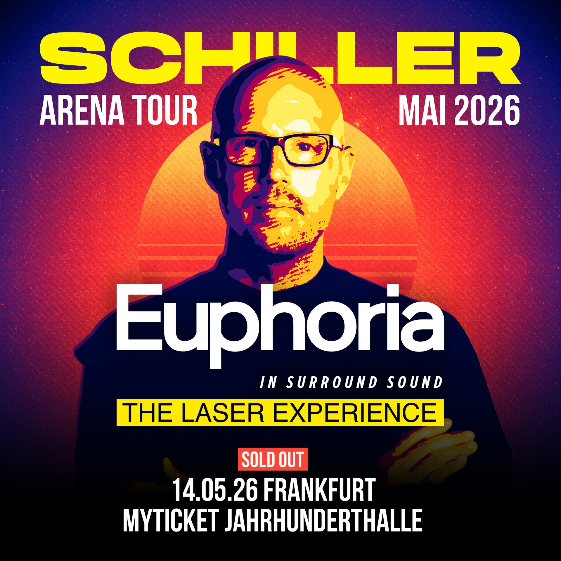 Nach umjubelten Open Airs und mitreißenden Clubshows kehrt Elektronik-Romantiker SCHILLER im Mai 2026 endlich zurück in die schönsten Arenen Deutschlands. Die "EUPHORIA“ - Tour wird uns in sattem Surround-Sound mit einem exakt auf die Musik abgestimmten Lichtkonzept in ein immersives Show-Erlebnis entführen. Mit einem Line-Up internationaler Top-Musiker wird Christopher von Deylen alias SCHILLER euphorische Klangwelten kreieren und erneut beweisen, wie facettenreich und energiegeladen elektronische Livemusik ist.
