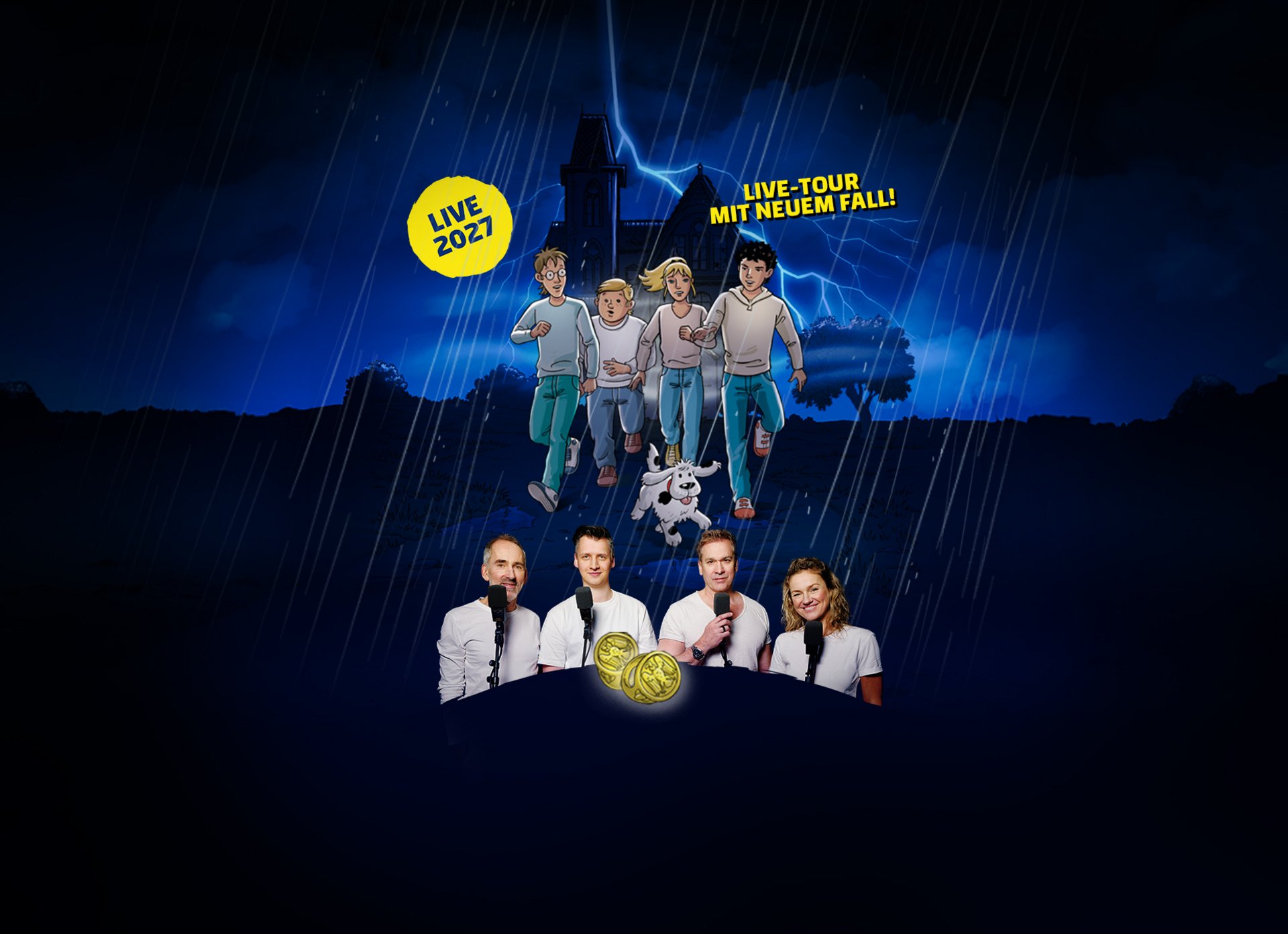 Auch 2027 gehen Tim, Karl, Klößchen und Gaby wieder auf große Live-Tour – mit einem komplett neuen Fall, der die Fans mitten hineinzieht ins nächste TKKG Abenteuer. In vielen deutschen Städten erleben Besucher:innen ein Live-Hörspiel, das packende Detektivspannung, atmosphärische Sounds und die unverwechselbare TKKG Dynamik auf der Bühne vereint. Ein ideales Erlebnis für Familien und alle, die Hörspiele live lieben.